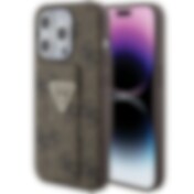 Guess Grip Stand 4G Triangle Strass-etui for iPhone 15 Pro Max - brun