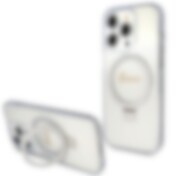 Guess Ring Stand Script Glitter MagSafe-etui for iPhone 15 Pro - gjennomsiktig