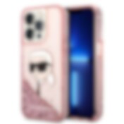 Karl Lagerfeld Glitter Karl's Head-etui til iPhone 14 Pro - rosa