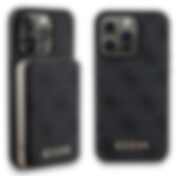 Guess 4G metall logo etui sett for iPhone 14 Pro Max + 5000mAh MagSafe Powerbank - Svart