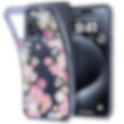 Spigen Flytende krystall iPhone 15 Pro-etui - rosa og blå blomster