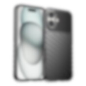 Carbon-etui for iPhone 16 Plus silikonetui - svart