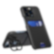 Lær Stativveske for iPhone 14 deksel kort lommebok med stativ svart