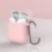 Silikonetui for AirPods 1/2 + nøkkelring med karabinkrok, rosa (etui D)