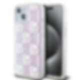 DKNY skinnveske med rutete ensfarget mønster og trykte striper til iPhone 14 Pro - rosa