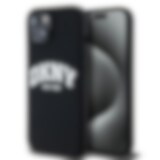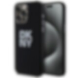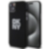 DKNY MagSafe iPhone 15 Pro-etui i flytende silikon med hvit trykt logo - svart