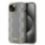 DKNY MagSafe iPhone 15 Plus-etui i skinn med rutete ensfarget mønster - Beige