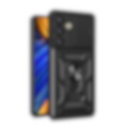 Hybrid Armor Camshield-etui med stativ og kameradeksel til Realme P3 5G - Svart