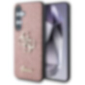 Guess Fast glitterdeksel med stor 4G-metallogo for Samsung Galaxy S25 Pink