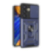 Hybrid Armor Camshield-etui med stativ og kameradeksel til Samsung Galaxy M16 5G / F16 5G - Svart