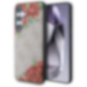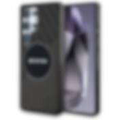 Guess Lær 4G-blomster i metall Classic Logo MagSafe-etui for Samsung Galaxy S25 - Svart