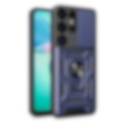 Hybrid Armor Camshield med kameradeksel og metallring for Samsung Galaxy S24 FE - Blå