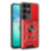 Hybrid Armor Camshield med kameradeksel og metallring for Samsung Galaxy S25 Ultra - Rød