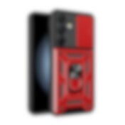 Hybrid Armor Camshield med kameradeksel og metallring for Samsung Galaxy S24 FE - Rød