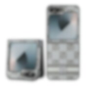 DKNY rutete mønster med trykte striper-etui til Samsung Galaxy Z Flip 6 - Beige