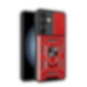 Hybrid Armor Camshield med kameradeksel og metallring for Samsung Galaxy S25+ - Rød