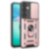 Hybrid Armor Camshield beskyttelsesskall med kamerabeskyttelse og mobilring for Samsung Galaxy S25+ - Rosa