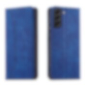 Lær Stativveske for Samsung Galaxy S23+ deksel kort lommebok med stativ blå