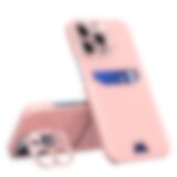 Lærstativveske for Samsung Galaxy S23+ kortlommebokdeksel med stativ rosa