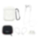 Silikonetui for AirPods 1/2 + etui/krok/stropp/klokkeremholder/karabinkrok - Hvit
