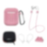 Sett med AirPods 2/1 silikonetui + etui/ørekrok/nakkestropp/klokkeremholder/karabinkrok - rosa