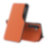 Eco Leather View Case elegant etui med klaff og stativfunksjon for Samsung Galaxy A26 - oransje