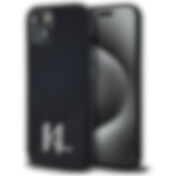 Karl Lagerfeld-etui i silikon med metallskriftlogo iPhone 15 - svart