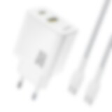 Dudao GaN USB-lader 30 W med 1xUSB, 1xUSB-C og USB-C til Lightning-kabel - hvit