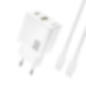 Dudao GaN USB-lader 30 W med 1xUSB, 1xUSB-C og USB-C til Lightning-kabel - hvit