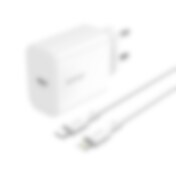 BWOO Vegglader med PD 20W 1x USB-C med USB-C - Lightning-kabel - Hvit