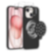Etui med Magsafe og sugekopp + skjerm- og linsebeskytter til iPhone 15 Plus - Svart