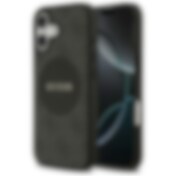 Guess Grained Hot Stamp Peony Triangle Logo MagSafe-etui for iPhone 16e - Svart