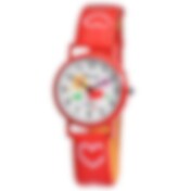 QBOS barneklokke med rem i skinnimitasjon - Rød