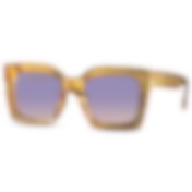 Kvadratiske Solbriller for Kvinner – Gul Innfatning med Lilla Linser, Resirkulert Materiale
