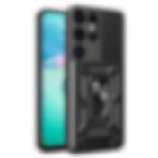 Hybrid Armor Camshield beskyttelsesskall med kamerabeskyttelse og mobilring for Samsung Galaxy S25+ - Svart